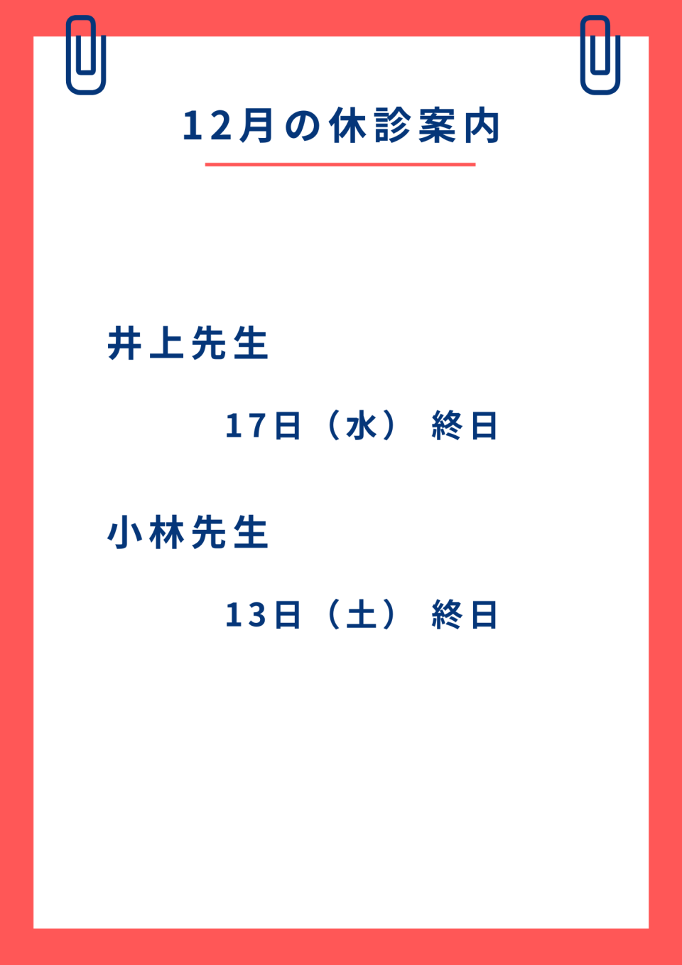 12月の休診案内