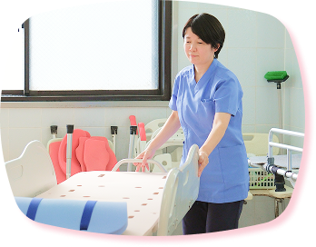 食事・入浴・排泄等の生活介助を中心に、環境整備や物品補充などの看護補助を担います。