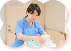 看護助手の配置が厚いため、看護師は本来の看護業務に専念できる環境です。